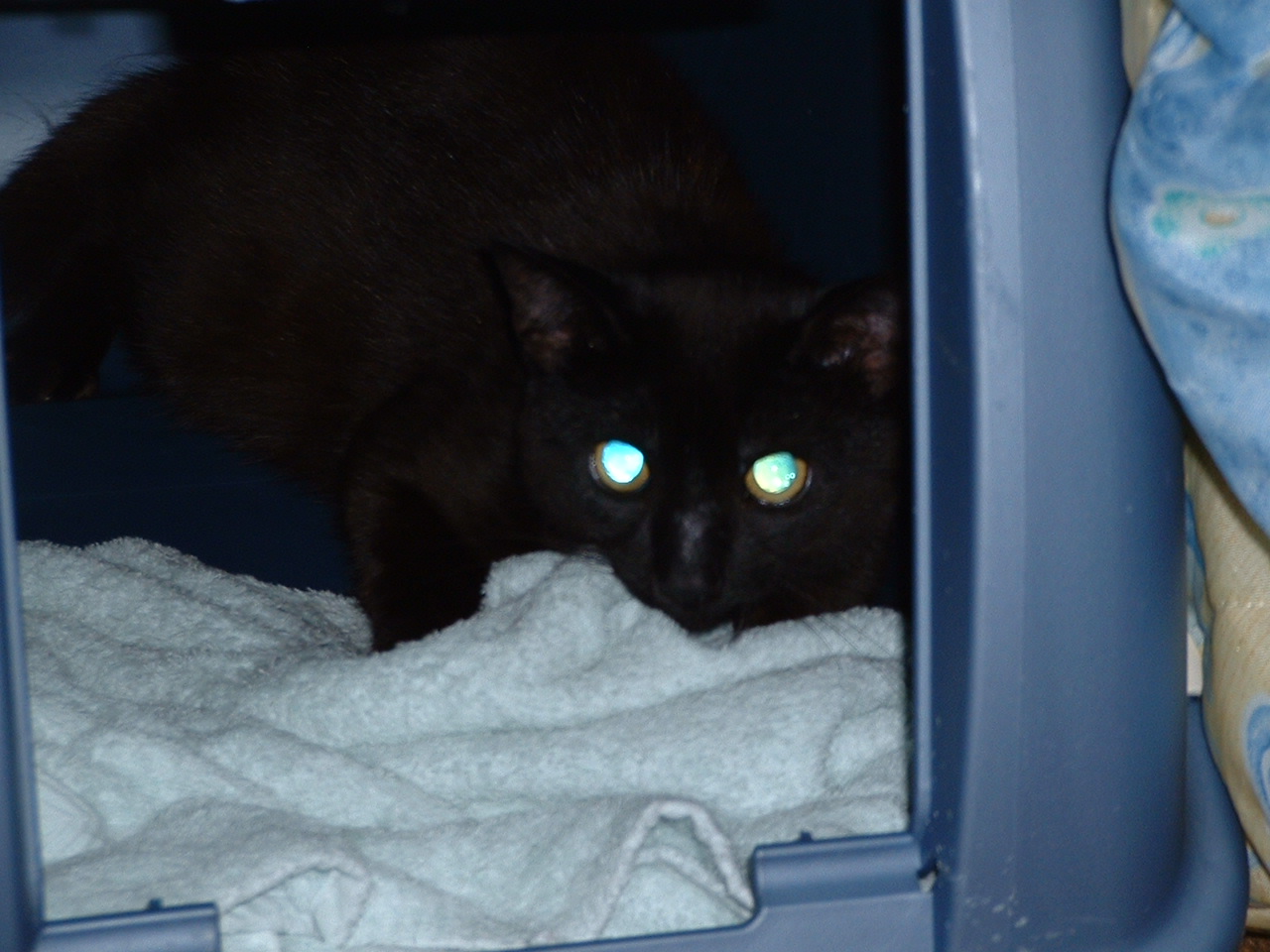My first experience at the vet’s was a bad one…I couldn’t predict what was going to happen next and I had a ‘feral freak out’…there was blood everywhere and I was really scared.  I just can’t go in my carrier or anything that reminds me of the wire thing that trapped me.
