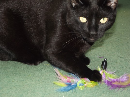 Six months after I was captured, a kitten (William) came to live with us…he had been hit by a car and had his own recovery to think about but he was fun and I liked him…and he really liked me.  I would wait until nighttime when the humans were asleep and William and I would play, then the other cats joined in.
