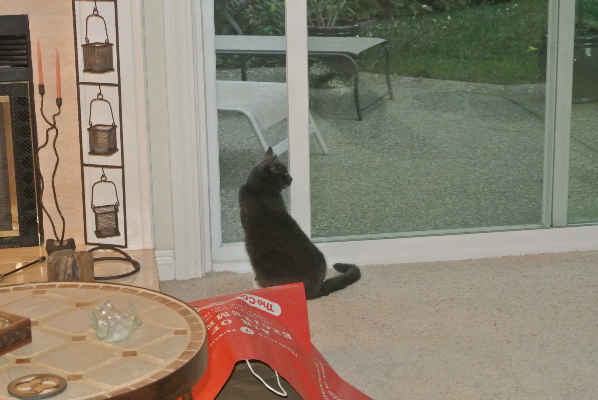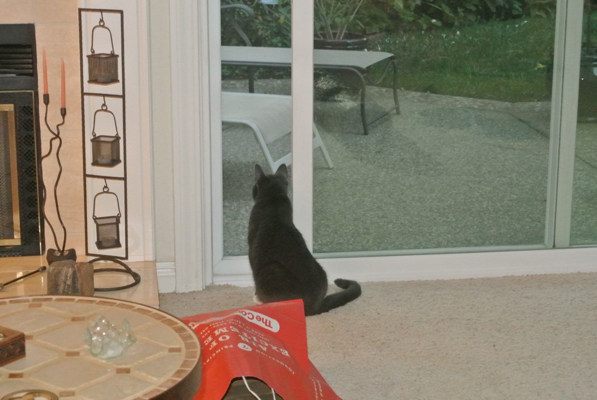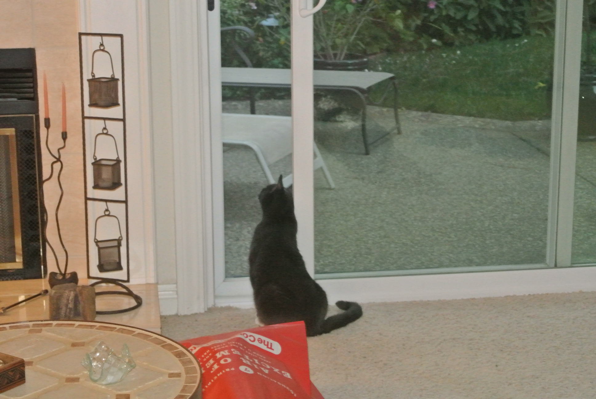 • oh yeah…a local wandering black kitty…hangs out from time to time…I already made a small errrr, ummm…ahhhh…well, ya know…rip…in the screen cuz I got so worked up over that kitty in MY NEW BACK YARD…sigh