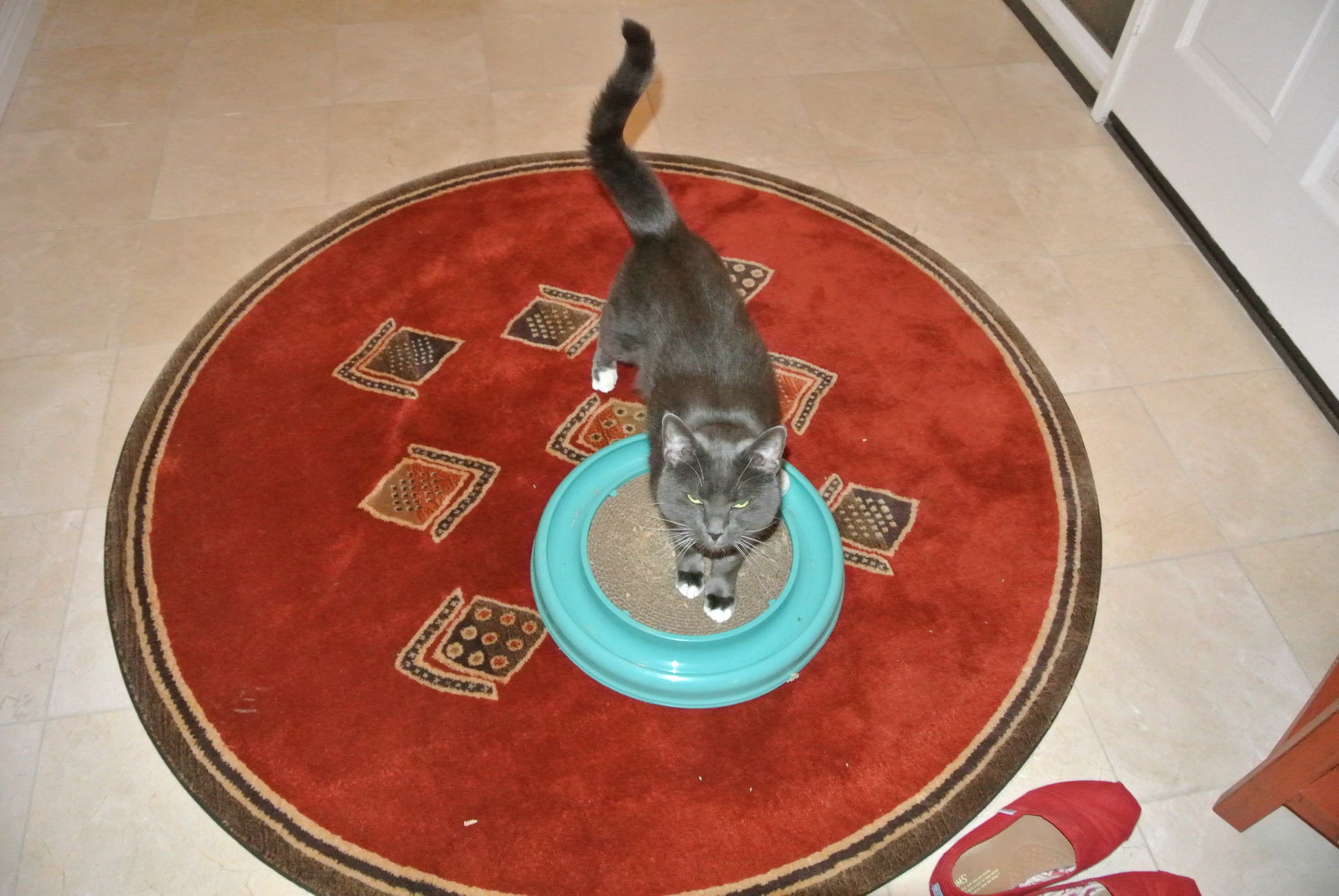 …stopped at the entry rug, which is actually MY rug just for my scratch pad and spin ball toy…”What?…I didn’t do anything!”…
