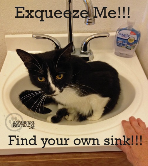 What a great way to start the day with a big laugh. I can relate to the sink cause kitty does not want to move from this comfy bed.