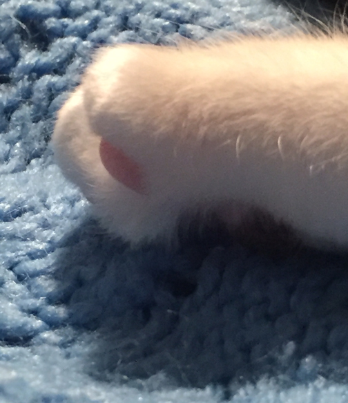 And now take a look at my darling little hind paw with the light filtering through my pristine white furs. Again, not one single fur is moving.