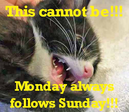 Them kittens sure have a great outlook on life though I have to agree I was shocked Mondays came when they did AND every week too! Once a year would have been fine with me, Jan first MOL