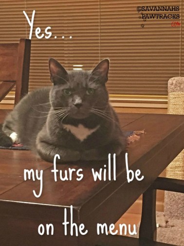 12. Awwww, fur served with everything is what it says on Mrs H’s menus, MOL. And yes, we love our nip toys way more than cuddles on percentage basis 😉