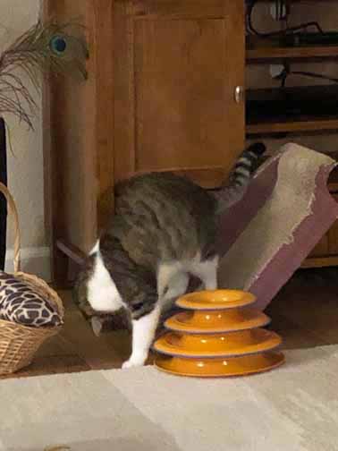 Hey wait a minute! I’m not sure if I wanna stay on my scratcher or whap the balls!!