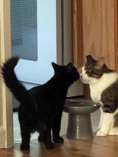 Pip is in the best forever home any kitten could ask for. Mom L and Dad P and Katie all miss him, but I am glad he isn’t here anymore. His liveliness frightened me and made me nervous enough that I stopped eating much out of concern he would sneak up behind me. You see I am close to completely deaf. As soon as Pip was off with his forever humans, I started to eat well again and took up my place in Mom L’s office which had been Pip’s bed time space for too long.