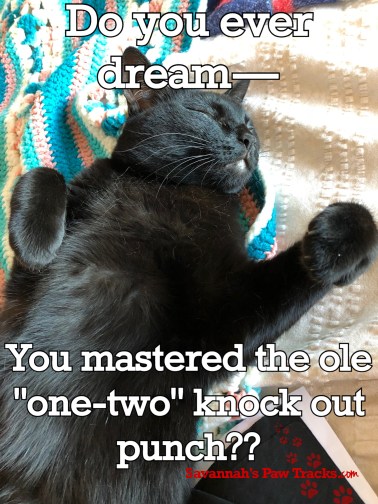I wonder who’s cat fur it is? TKS, I always dream of mastering the “one-two” knock out punch.