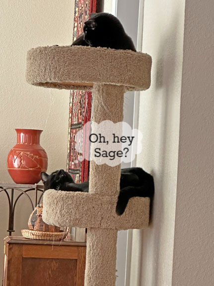 12:30 PM (PDST), Friday October 6, 2023—our home stopped breathing, everything around us stood still. Peter and I held our breath—knowing that our precious, sweet eleven-year-old house panther Sage had just started her journey to The Rainbow Bridge. All else before and after that moment is still a bit fuzzy.