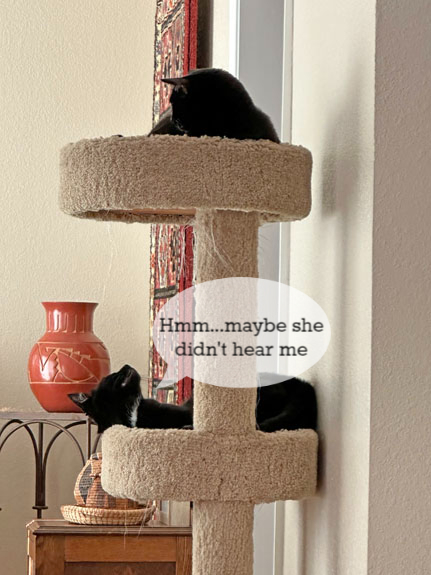We are so very fortunate that my best friend happens to be our retired feline veterinarian, Dr. Josie. On Friday morning about 4:30 AM, I visited Sage where she was resigned to stay downstairs. We don’t think she could move. We called Josie immediately about 8 AM and she changed her personal plans to come over to help us send Sage painlessly onto her journey to The Bridge.