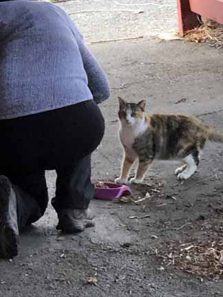 Talk about us cats having nine lives! This cat is about 5 years old. No telling where she has been. We fostered her for a short time and now she has been with the best kitty foster ever, Miss Yasmin! Because of Miss Yasmin’s way with scared, abandoned cats, Senorita is on her way to adoptions this coming weekend!! Her foster adores her! You can see her eating when she returned to the park and now look at her looking at her foster with such adoration in her eyes!! Her name is “Señorita”. Please send her purrs of encouragement for her first time at the adoption even this coming Saturday!!