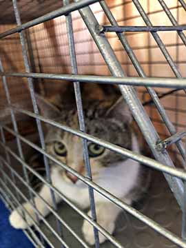 A couple of our volunteers have been trying to trap a mom cat at their apartment complex for months and months! She has had four litters in three years! They have fostered the kittens from two of those litters. Finally, they trapped her!!! WOO HOO!!! And they also trapped another young female, less than a year old. Mom L and Dad P offered to recover the two girls as they need to be kept for a minimum of four to six nights. The black mom cat was in heat and the gray juvenile girl was pregnant with six kittens!