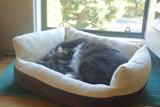 I don’t think we qualify to enter as we are outside US, but will just quickly share about Austin. The little guy is a rescue kitty and was found badly injured inside a car engine (which is why he is called Austin!). The rescue people thought he was about 7 months old (but he was probably older as he grew so quick once he came here). We have no idea where he came from, but he was a stray not feral, that seemed clear. He mended very well and you wouldn’t know he had a wonky hip as he’s just got a bit of a lump on it but it doesn’t impede him at all!