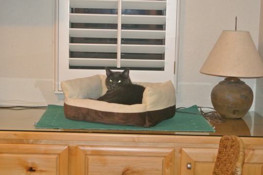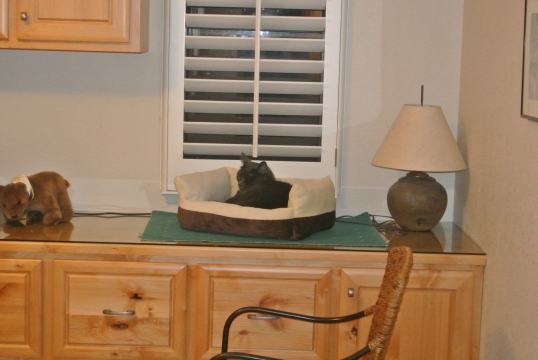 This is the story of how Callie adopted me. I went to the local SPCA to look for a kitten I had seen on PetFinders. As I walked into the building, before anyone could help me find the kitten I came to see, a little tiny calico kitten walked up to me and started meowing. I picked her up and loved on her a little. But I told my mother I did not think I should adopt her however, because she looked a little like the cat who came before her and I was afraid it would not be fair to her if I adopted her and then expected her to be like my beloved Mousie. So I sit her down – for a second. I then decided to pick her back up to hold her “just for a little while”. I started looking around at the other kitties – sadly there were many, many up for adoption. I found the one on PetFinder, but it just did not feel like the right match, I decided while still holding the little calico. I looked at a Siamese, while clutching the calico. After a half an hour of looking at many cats, my mother pointed out that the whole time I had been looking, I was still holding the calico. I looked down at her and she reached up and patted my cheek. That calico – now known as Callie (a.k.a. Trouble) came home with me. And by the way, her personality couldn’t be more different from Mousie’s – and I am just fine with that!