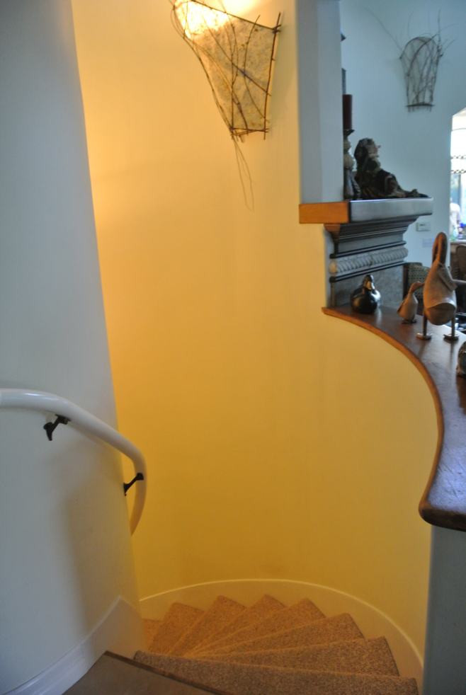 Stairs down to bedrooms, pool
