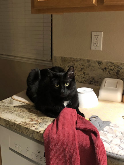 WELL! I caught Domino, the new youngling, saying something to my trusted lady in waiting, sweet Katie. You can see he is directing his words to her—not having cleared his message with me!