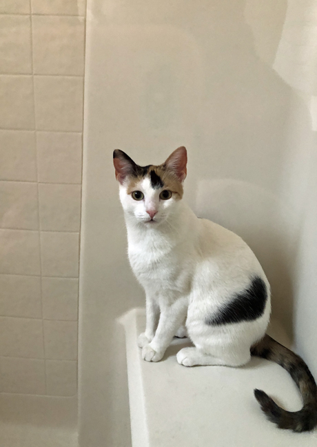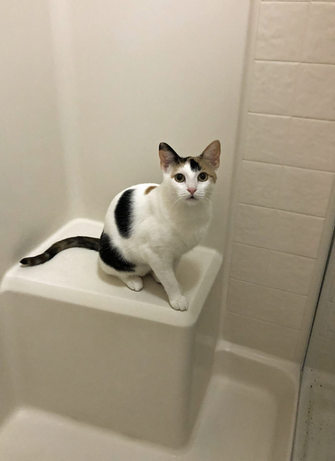 And there isn’t a new box that shows up that she doesn’t try to hog! Not to mention her lack of discretion in showing up during Mom L’s preparation for her daily spit bath shower! That CJ is in the shower before Mom L can even turn on the water!!