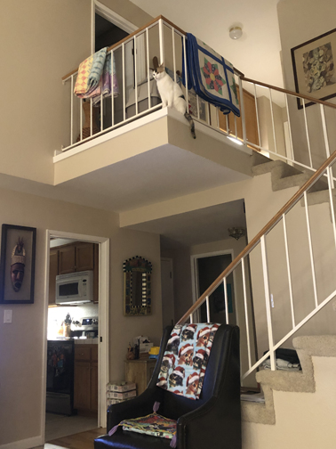Until she then does the thing that drives Mom L over the edge into fear—and she hangs out on the outer teeny tiny edge of our upstairs railing.