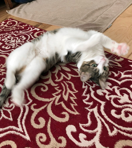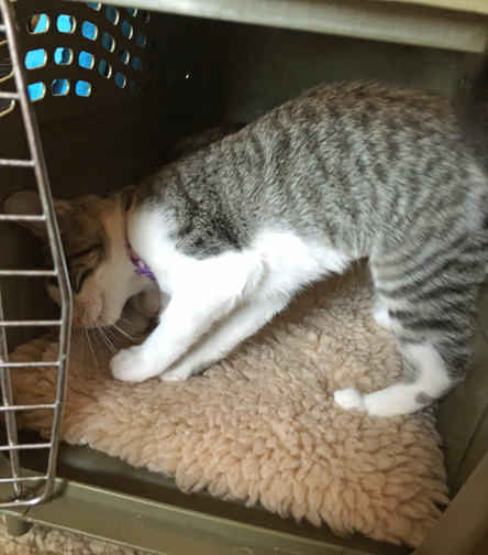 And this is the joy and worry of rescuing friendly community cats and kittens. Where do you find a path for their adoption? Who will want a youngster like Katie who is about nine months old, with a permanent limp, and needing lots of patience and understanding? The concerns for their futures are real. Humans return kittens and cats for reasons that are mind numbing—too needy, not affectionate, timid, won’t get in my lap, etc. etc.