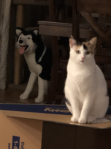 And there isn’t a new box that shows up that she doesn’t try to hog! Not to mention her lack of discretion in showing up during Mom L’s preparation for her daily spit bath shower! That CJ is in the shower before Mom L can even turn on the water!!