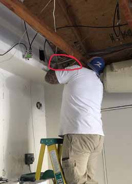 - They don’t have any tools to cut into the wallboard. So Miss Venus calls on her good friend, who is a contractor,—Mr. Ron. He comes right over! And he has just the right small power saw to cut through the wallboard. So up he goes to do some cutting.