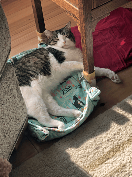 You can see that even as a senior gal at eighteen years old, I still have my bright green eye color! I hope that all my senior blogging pals are doing good and that you are comfortable as you age. Do any of you have challenges like mine? What do your humans do to keep you comfy?