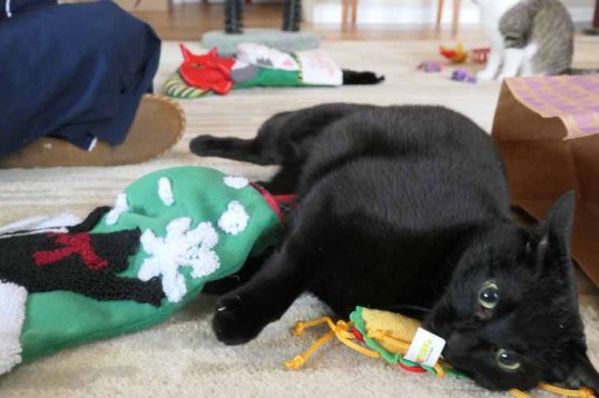 And our foster kittens Arwen and Frodo shared in the festivities by checking out their very own little stockings.